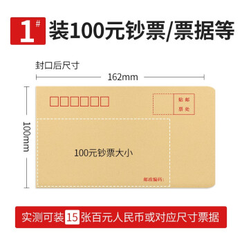 100个/包标准牛皮纸信封信纸邮局信工资袋增值税发票专用信封袋 黄色白色多规格多功能 黄色1号162*100mm(100个) |