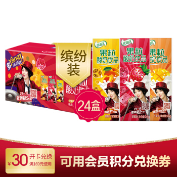 伊利 优酸乳果粒酸奶饮品饮料(草莓+黄桃+芒果)245g*24盒/箱(礼盒装) |