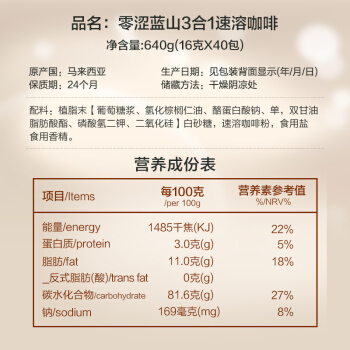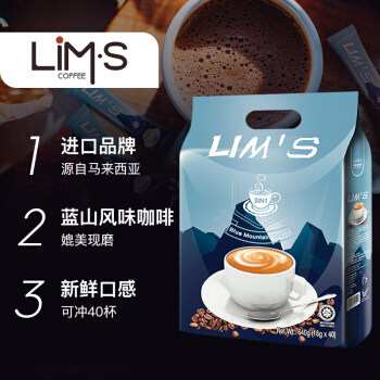 马来西亚进口 零涩 蓝山风味速溶三合一咖啡 40条640g |