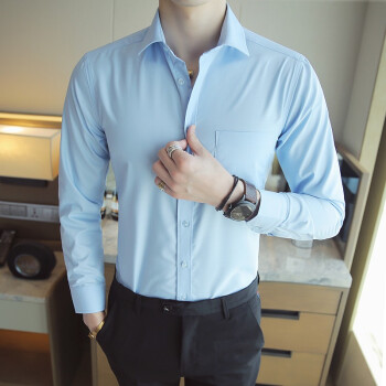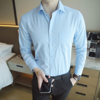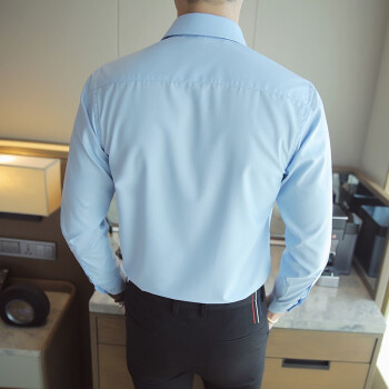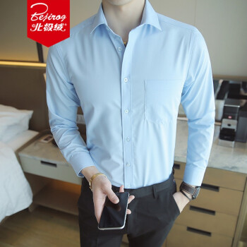北极绒男士长袖衬衫纯色工装衬衣青年男款男生修身白衬衣白衬衣男款大码衣服男装上衣职业装正装 K09蓝色-长-袖 40 |