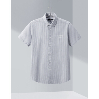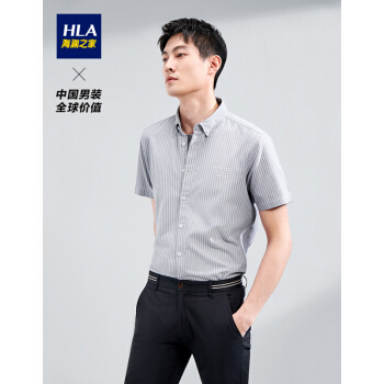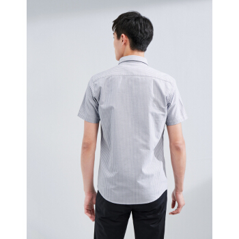 HLA海澜之家水洗棉质短袖衬衫夏季新品休闲条纹短衬男HNECD2Q012A 浅灰条纹12 170/88A |