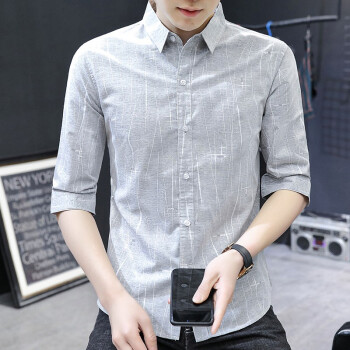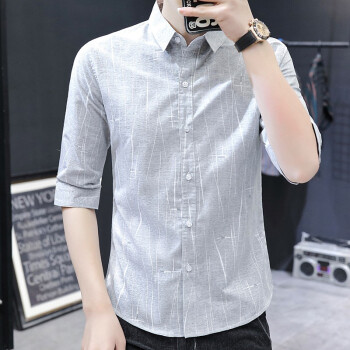 ED.HD衬衫男夏季新款短袖衬衫男士五分袖衬衣时尚休闲韩版男装潮流衣服 6028浅灰色 XL |