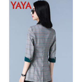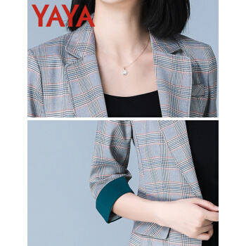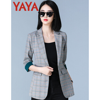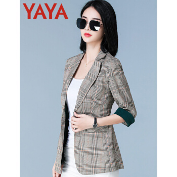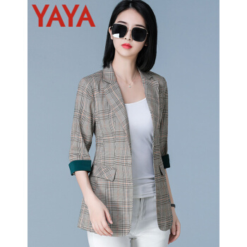 鸭鸭服饰yaya小西装女女装秋季新款外套女春秋流行韩版女百搭上衣七分袖 咖啡格 L |