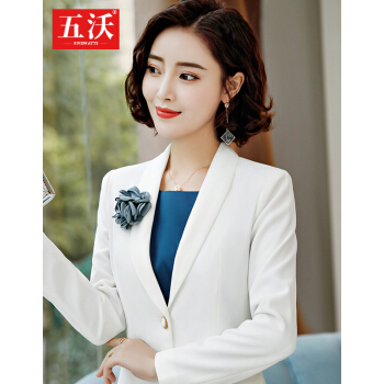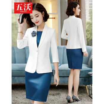 五沃 职业装女装套装小西装连衣裙女修身ol气质时尚工作服商务正装套装裙 单件白色中袖外套 L |
