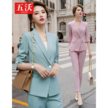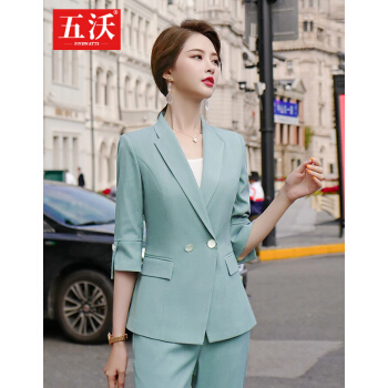五沃 职业装女装套装小西装女修身设计感小众韩版时尚气质名媛西服 单件浅绿色外套 L |