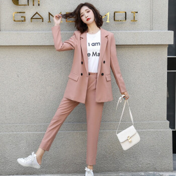 留和 小西装外套女秋季新品休闲职业装女装套装时尚款修身小个子工装外套X9911 粉色 L |