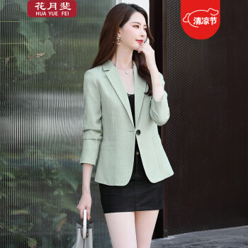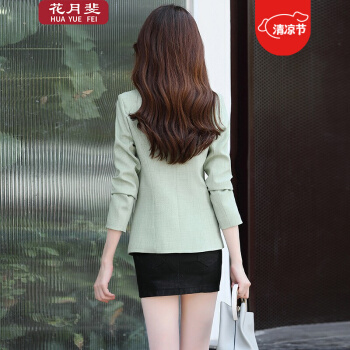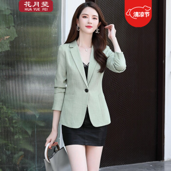 花月斐小西装女秋季新款西服时尚一粒扣个性长袖OL通勤西服小外套女005 绿色 L |