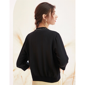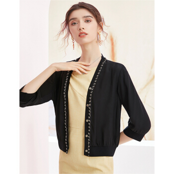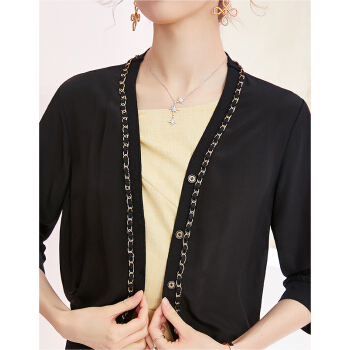 洛诗琳夏秋新款真丝开衫女重工链条拼接小外套透气百搭单品 付款4天发 付款4天发 黑色 XL |