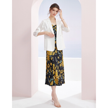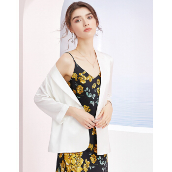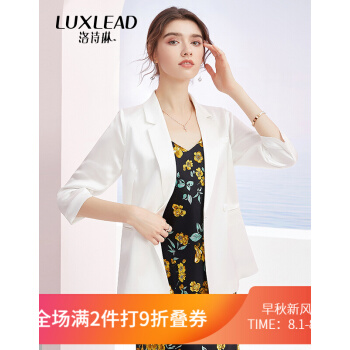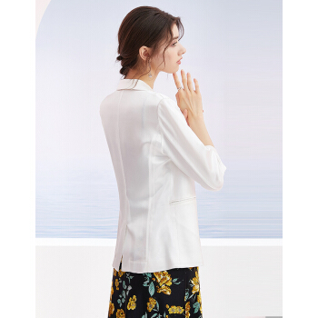 洛诗琳秋季新款醋酸纯色西装气质时尚魅力西装领七分袖垂感外套女 付款4天发 白色 S |