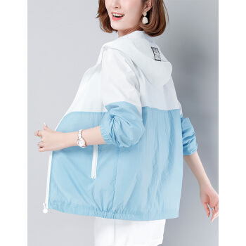 婪澈夏季妈妈防晒服长袖新款韩版洋气中年防晒衣女大码短款外套薄 天蓝色 请拍正确尺码 |