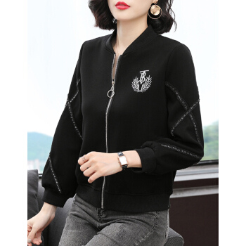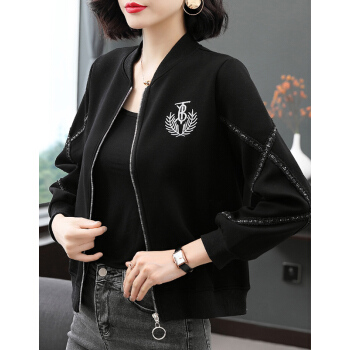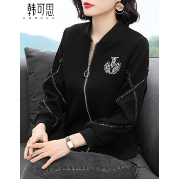 【精选好货】 韩可思棒球外套女春秋季新款女装女士短外套棒球服妈妈装春秋休闲宽松外穿上衣 黑色 请拍正确尺码 |