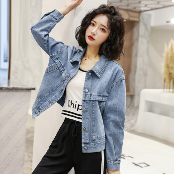 玄衣然 牛仔外套女春秋新款韩版宽松显瘦时尚洋气短款简约英文刺绣上衣潮 图片色 L |