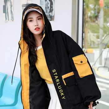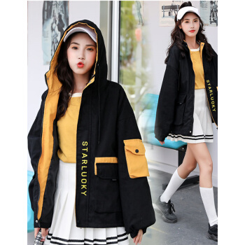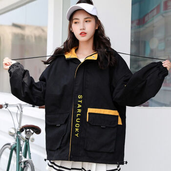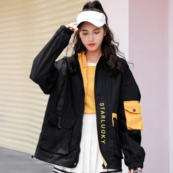 茵美伊 短外套女春秋女装大码韩版百搭BF棒球服工装学生外套女 黑色 M |