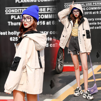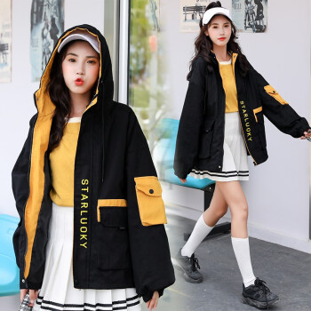 轩薇奴短外套女秋季新款女装韩版时尚大码宽松显瘦连帽工装风衣港味ins棒球服女X2181 黄色 M |