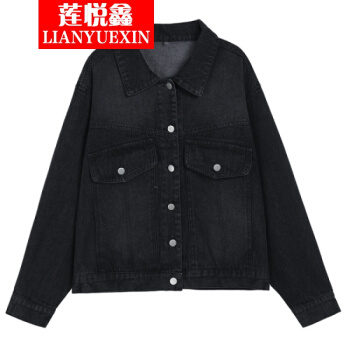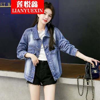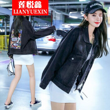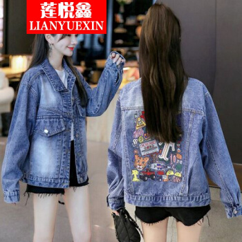 莲悦鑫短外套女大码外套女春秋新款韩版宽松印花牛仔外套女百搭网红夹克上衣18631 A蓝色背后涂鸦 S |
