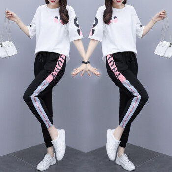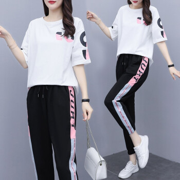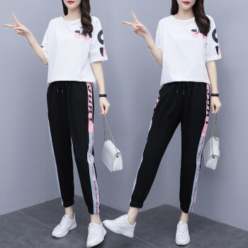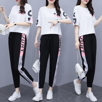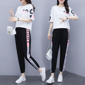 睡妍 大码女装套装女夏夏季新品加肥加大码胖mm宽松显瘦遮肉印花短袖T恤九分裤休闲运动套装女夏 图片色 XXL(120-140左右) |