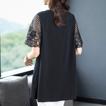 木棉林高端大码女装新款夏装胖妹妹mm减龄镂空拼接洋气印花中长款宽松显瘦T恤女L202797 黑色 2XL建议140-160斤 |