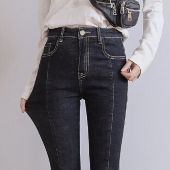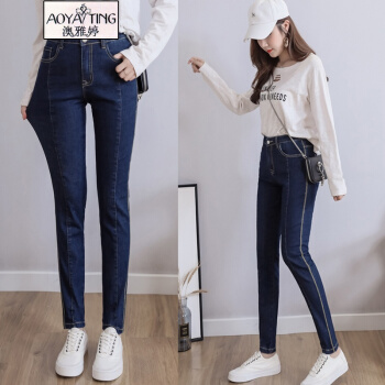 澳雅婷大码牛仔裤女胖mm200斤胖妹妹秋装新款弹力显瘦修身高腰小脚长裤子9019 深蓝色 4XL 建议您170-190斤 |
