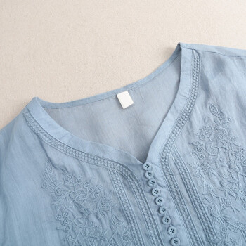 芷依丽 时尚套装女夏季新款韩版刺绣宽松大码显瘦减龄短袖T恤女休闲九分哈伦裤两件套 蓝上衣+条纹裤 M |