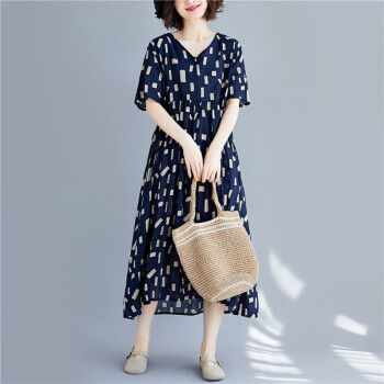 零点蚂蚁新款加肥加大码女装胖mm夏装洋气休闲时尚韩版v领收腰遮肉宽松连衣裙胖人女装胖妹妹裙子 图片色 均码【110-200斤】 |