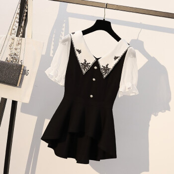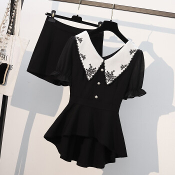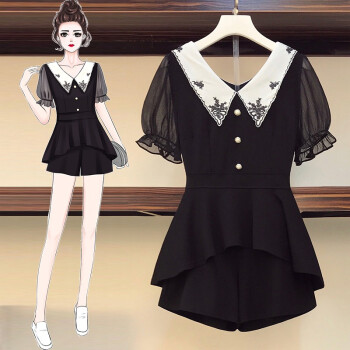 芷依丽 大码时尚套装女夏季新款韩版宽松显瘦胖MM短袖T恤女休闲阔腿短裤洋气减龄遮肚子两件套 黑色 L(建议96-115斤) |