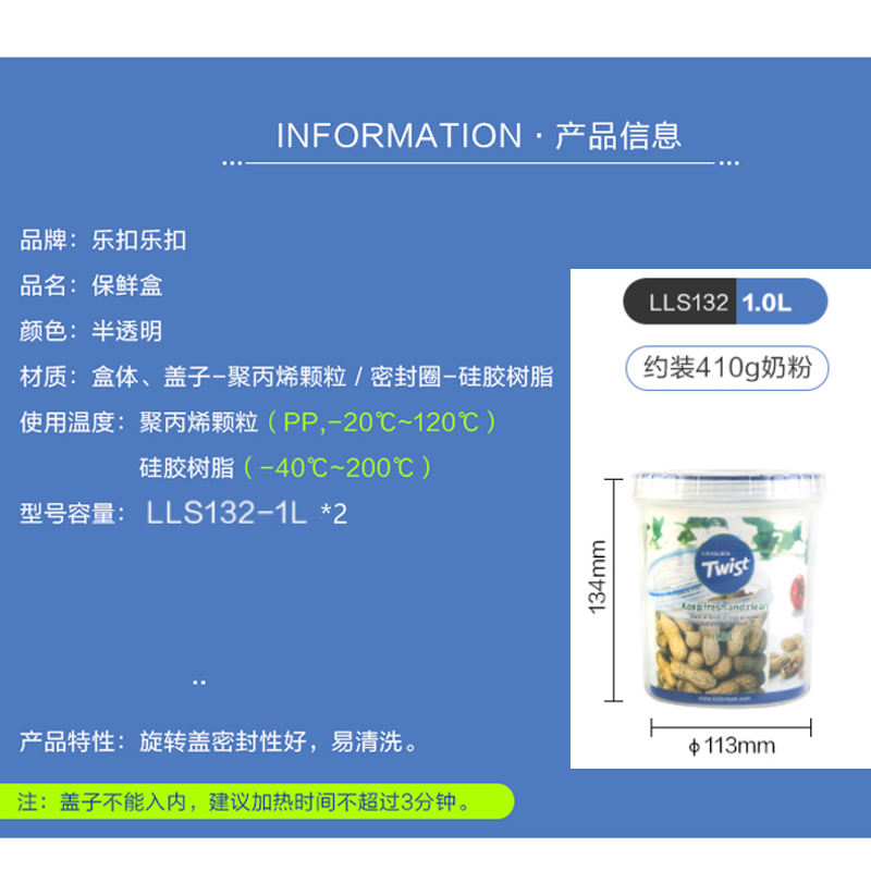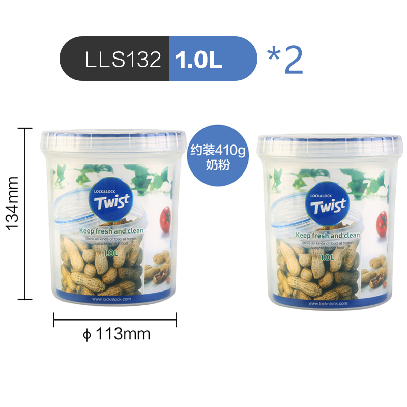 圆形塑料保鲜盒两只装 1L*2【塑料/透明】 |