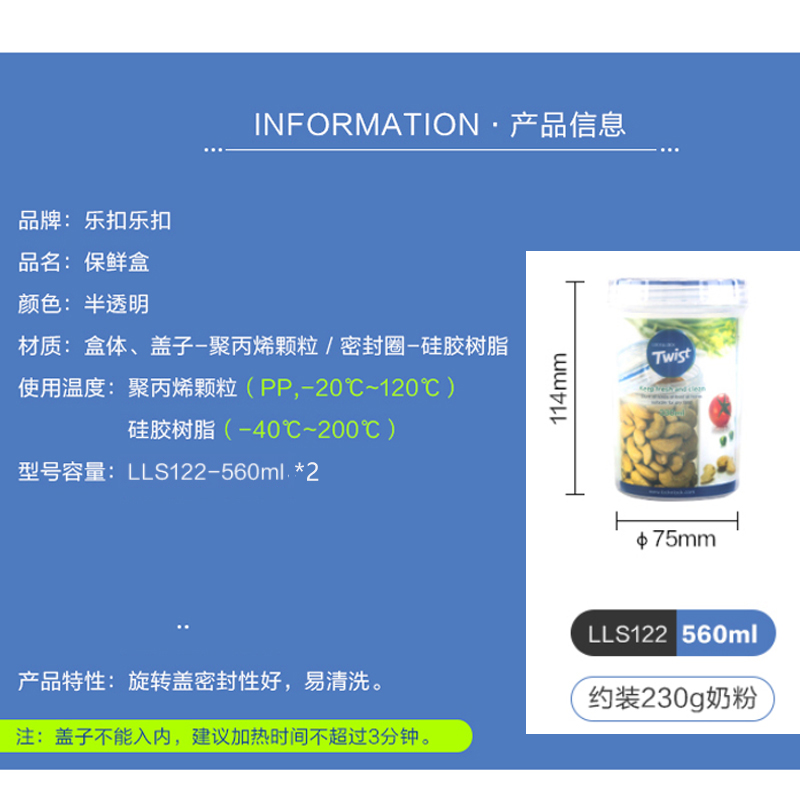 圆形塑料保鲜盒两只装 560ML*2【塑料/透明】 |