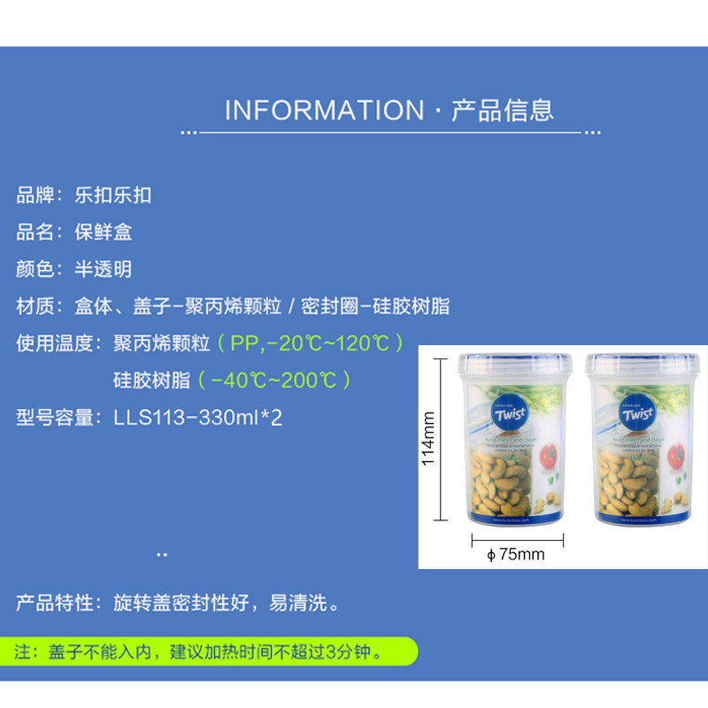 圆形塑料保鲜盒两只装 330ML*2【塑料/透明】 |