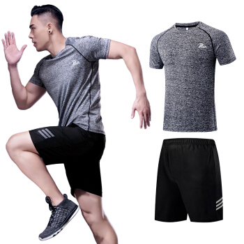 普为特POVIT 运动套装男士健身服夏季运动跑步篮球服吸汗透气速干衣短裤短袖 灰黑两件套 XL码 P-824 |