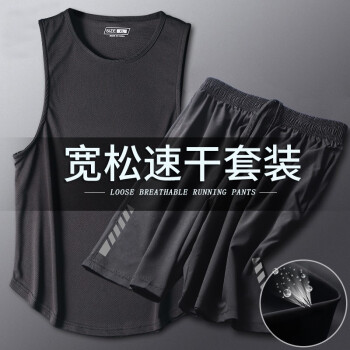 艾伦伯顿(Alen Botun)运动套装男速干跑步夏季冰丝衣宽松背心短裤健身房篮球服训练衣服 159黑【冰丝套装】 2XL(160-190斤) |