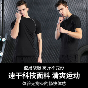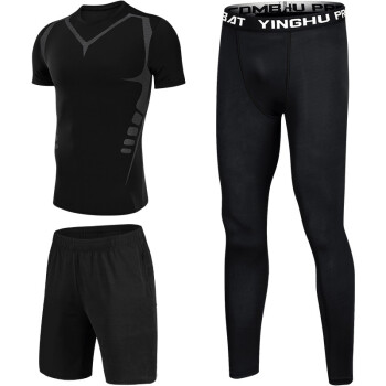 赢虎 健身服男跑步运动套装高弹速干衣篮球训练服弹力短袖短裤夏季套装 科幻三件套 XL(130-145)斤 |