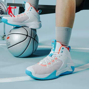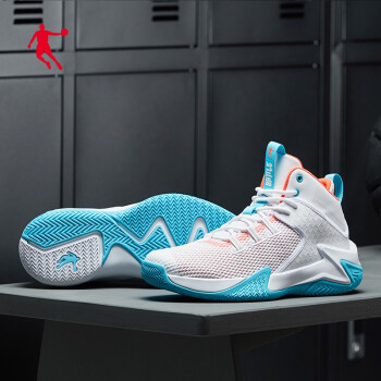 乔丹男鞋篮球鞋夏季款防滑耐磨透气实战高帮运动鞋球鞋户外战靴男 白色/天使蓝-110 42 |