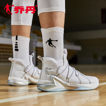 乔丹篮球鞋男高帮透气耐磨减震实战球鞋男子潮流运动鞋 白色/银色 41 |