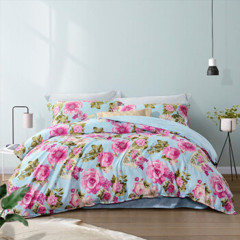 富安娜家纺圣之花 四件套纯棉全棉床品套件床单被套 印花单双人 素笺轻吟 1米8/2米床(230*229cm)蓝色 |