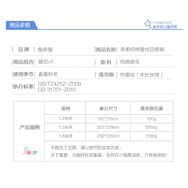 亲柔纯棉蚕丝四季被(被芯1件)(适合1.8米床)【面料:纯棉磨毛;填充:柞蚕丝/白】 |