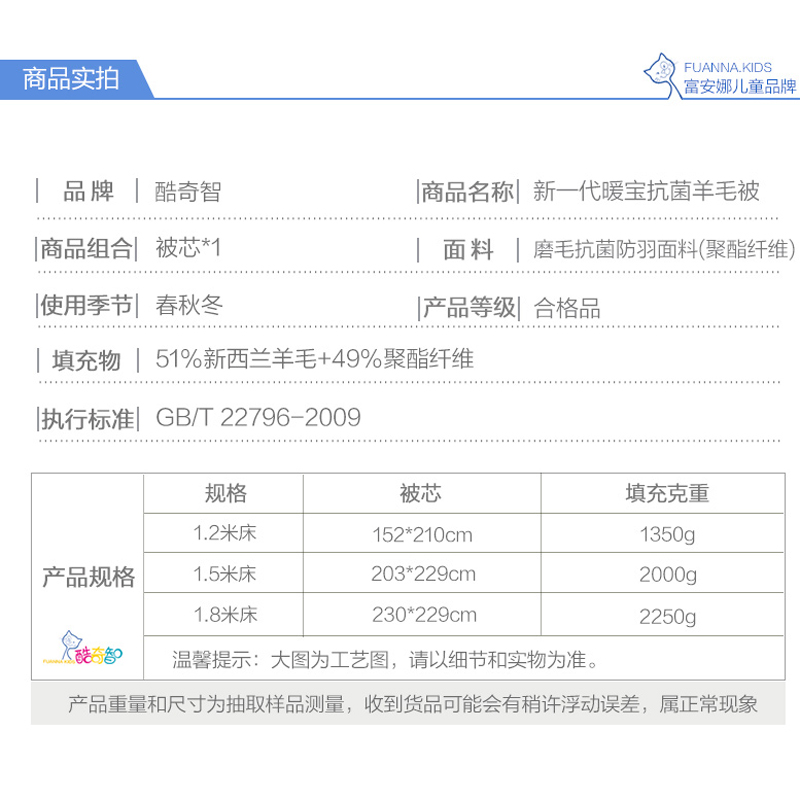 新一代暖宝抗菌羊毛被(被芯1件)(适合1.5米床)【全涤抗菌磨毛防羽/白】 |