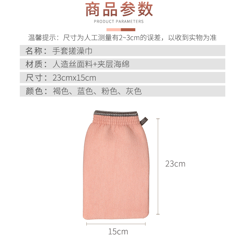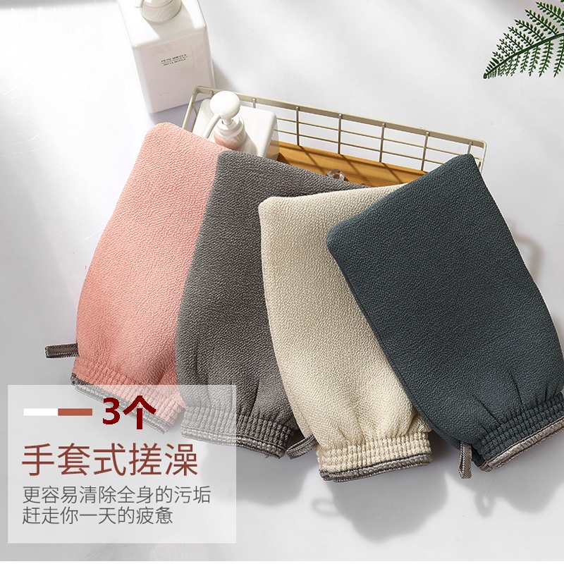 沐浴手套双面搓澡巾3个【人造丝面料+夹层海绵/颜色随机】 |