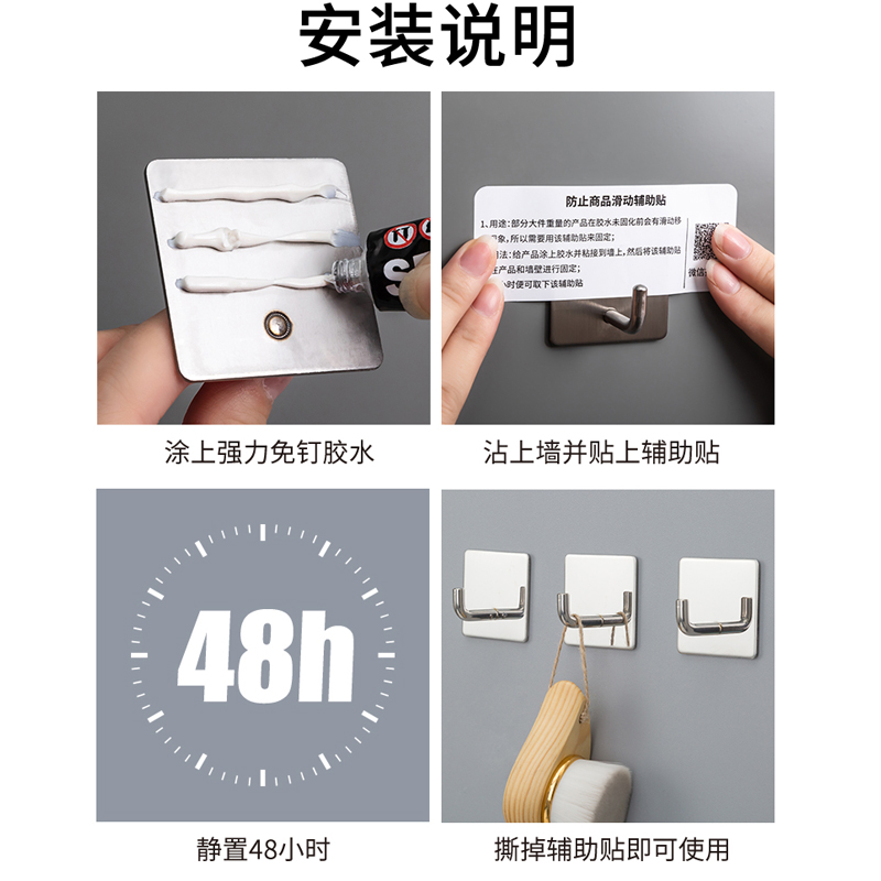 不锈钢挂钩8个【不锈钢+免钉胶/银色】 |