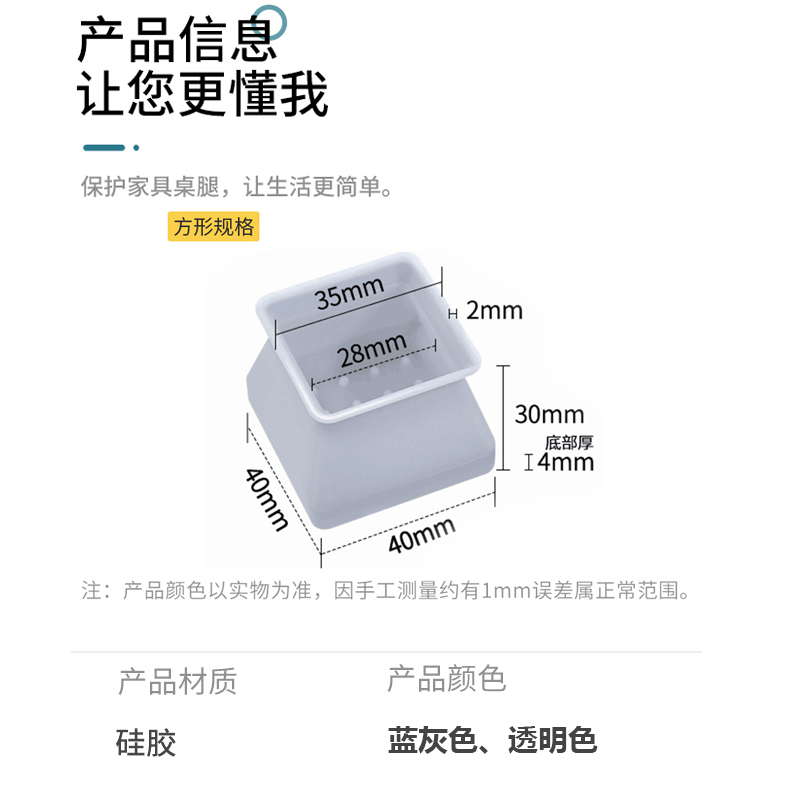 硅胶桌脚垫16个方形【硅胶/颜色自选】 |