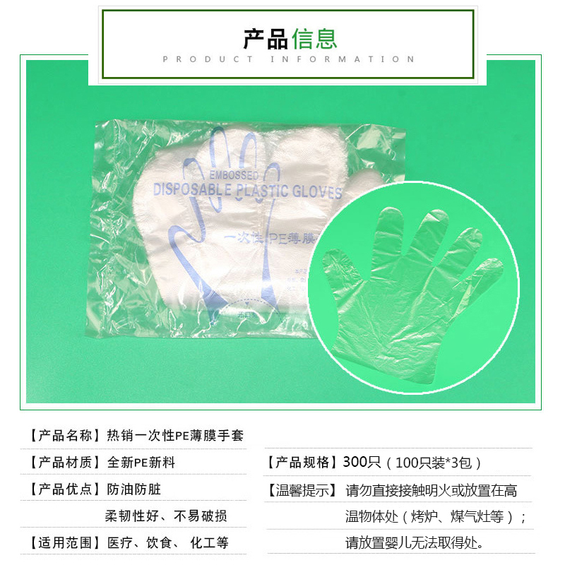 一次性手套300只【PE新料/图片色】 |