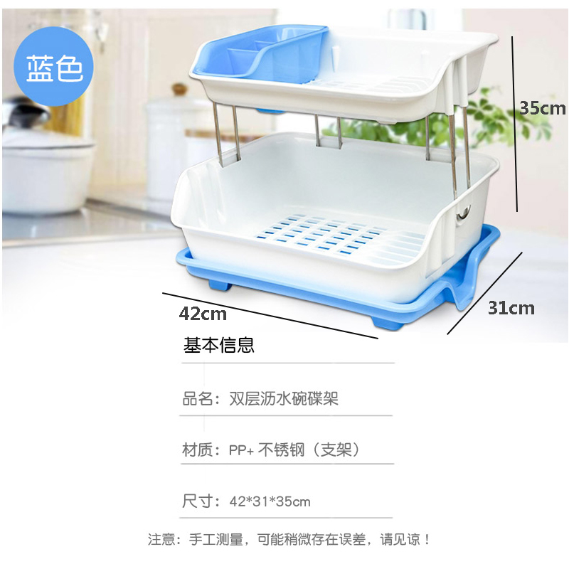 双层沥水碗碟架【PP+不锈钢/天蓝色】 |