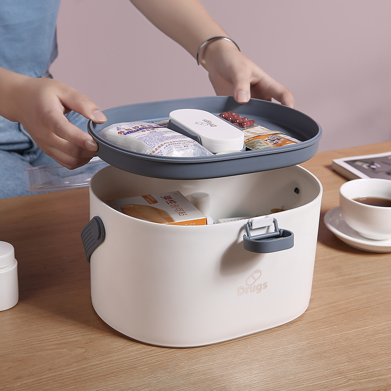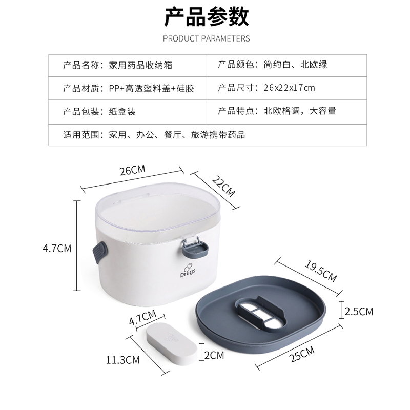 家用药品收纳箱双层【PP+高透塑料盖+硅胶/简约白】 |