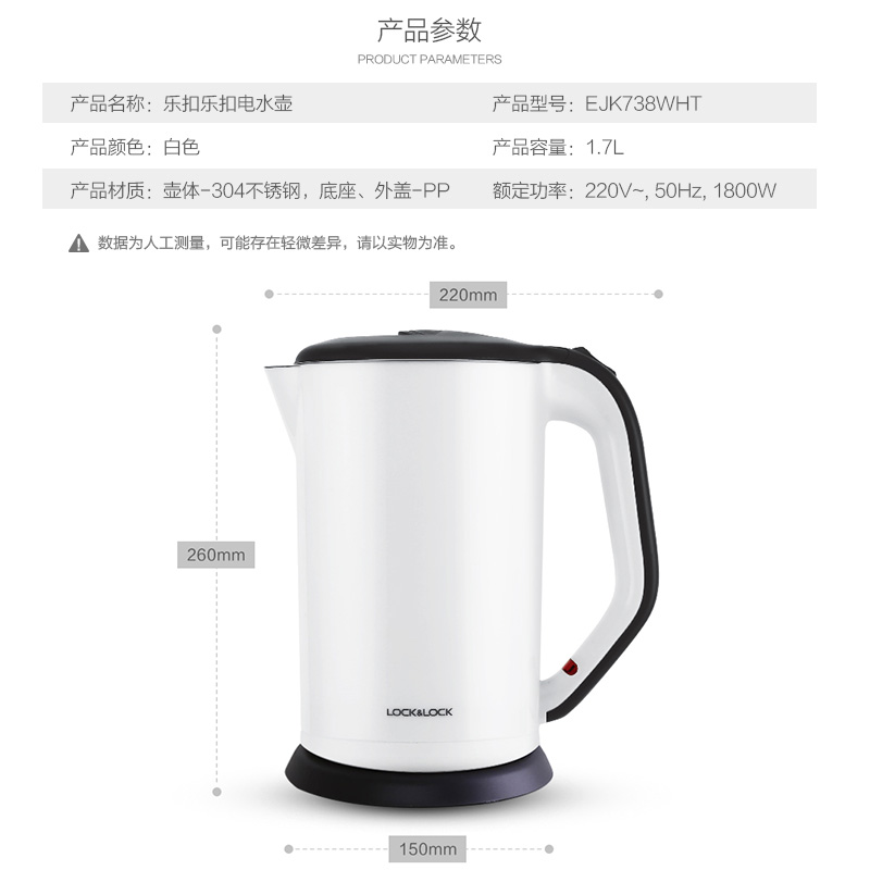 乐扣乐扣电热水壶1.7L【不锈钢/白色】 |