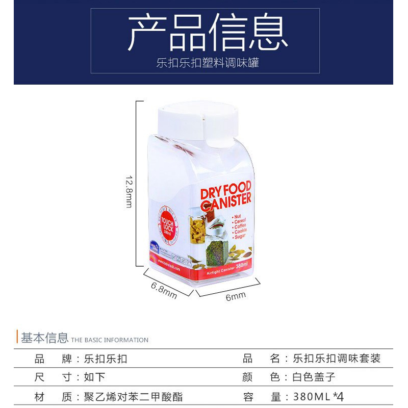 乐扣乐扣塑料厨房家用调料瓶 4件【塑料/白色】 |