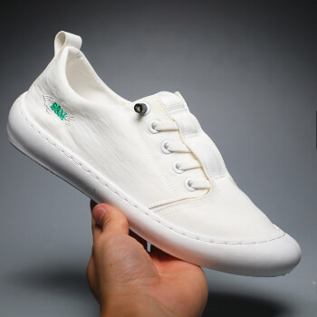 男鞋夏季新品鞋子男潮鞋户外休闲鞋小白鞋透气帆布鞋冰丝板鞋老爹鞋一脚蹬休闲懒人老北京布鞋 MX-H01白色 41 |