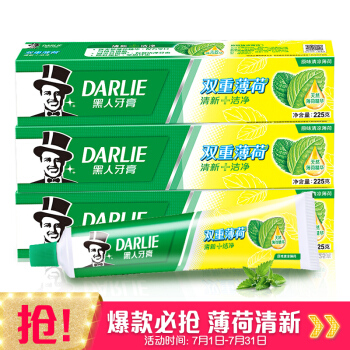 黑人(DARLIE)双重薄荷牙膏套装225g×3支(共675g) 清新口气 有效防蛀(新旧包装随机发放) |