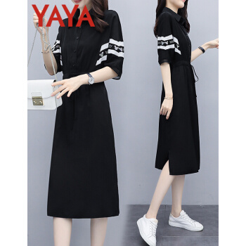 鸭鸭服饰(yaya)连衣裙女女装夏季新款轻熟风收腰显瘦气质洋气法式流行夏天长裙子 图片色 请选择正确尺码 |