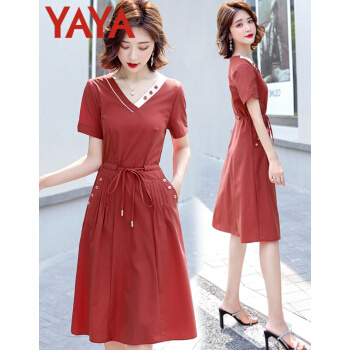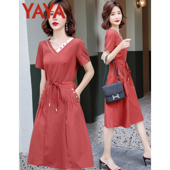 鸭鸭服饰(yaya)连衣裙女女装夏季新款女装显瘦减龄收腰A字裙复古休闲气质裙子女 红色 请选择正确尺码 |