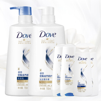多芬(Dove)洗护发套装 密集滋养修护洗发乳700ml +护发素700ml+洗发乳100ml×2+护发素100ml×2 |