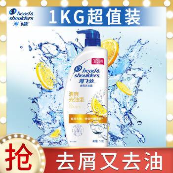 海飞丝洗发水清爽去油型1KG(持久去屑清洁止痒清爽柔润)柠檬香 男士女士通用 新老包装随机发货 |